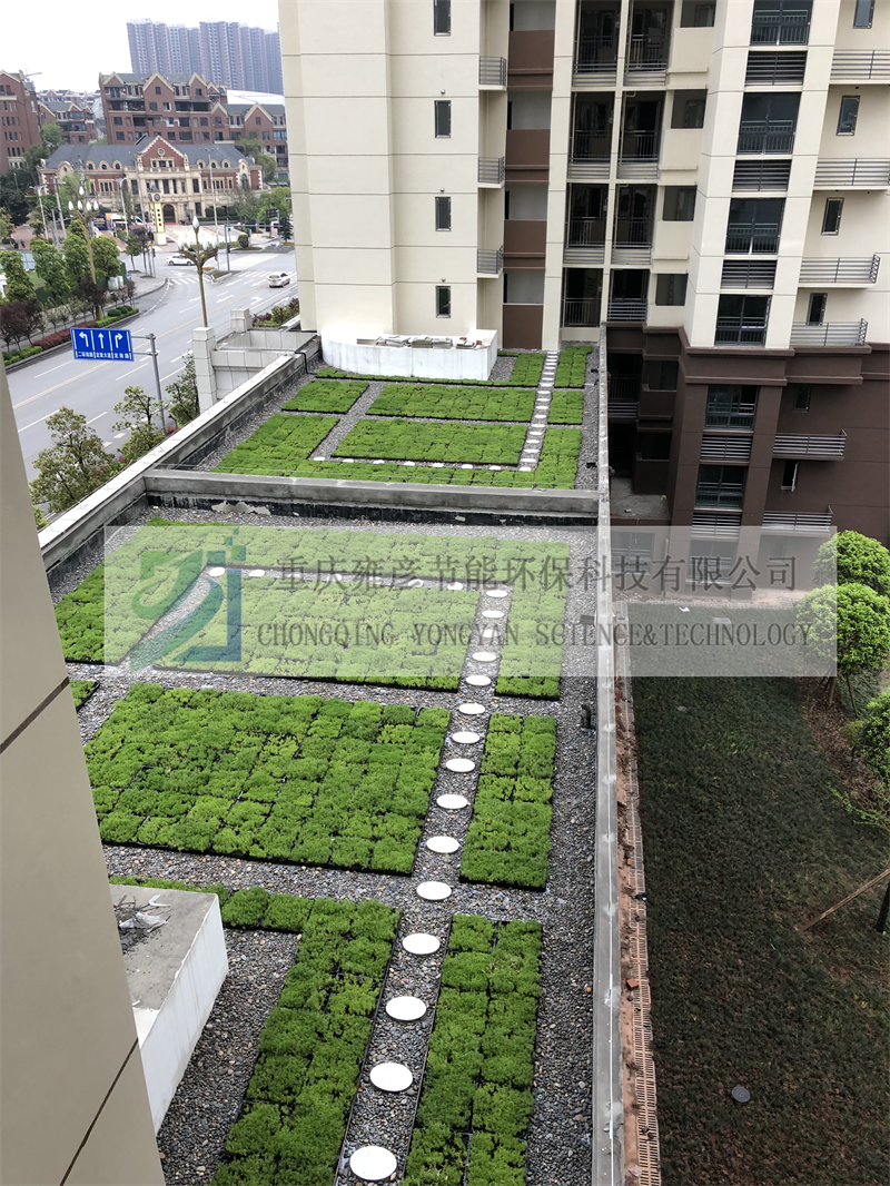 綠色屋頂實(shí)施區(qū)域?yàn)橛變簣@屋頂、商業(yè)屋頂,施工面積1850.01㎡。