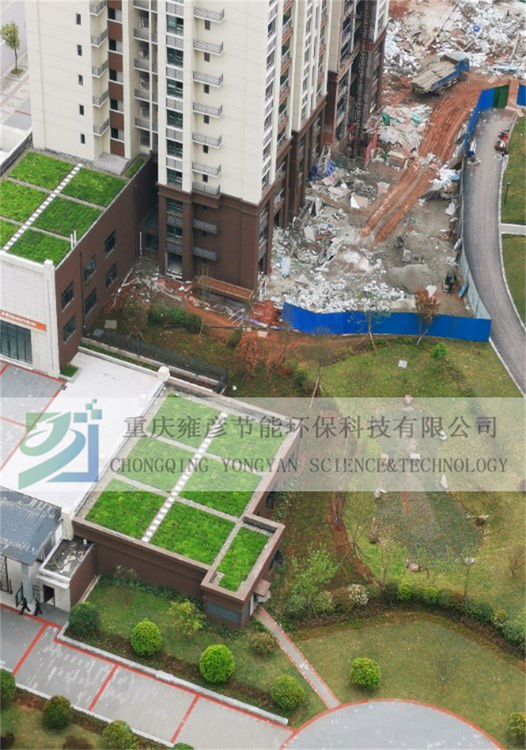 綠色屋頂實(shí)施區(qū)域?yàn)樯虡I(yè)屋頂,施工面積2544.29㎡。